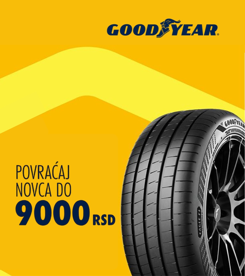 Jeste li spremni za povraćaj novca? Kupite komplet letnjih ili celogodišnjih guma Goodyear (za putnička ili laka komercijalna vozila) od 15. 3. zaključno sa 15. 5. 2026., registrtujte se na web-stranici do 22. 5. i dobijate povraćaj novca u vrednosti do 9000 RSD.